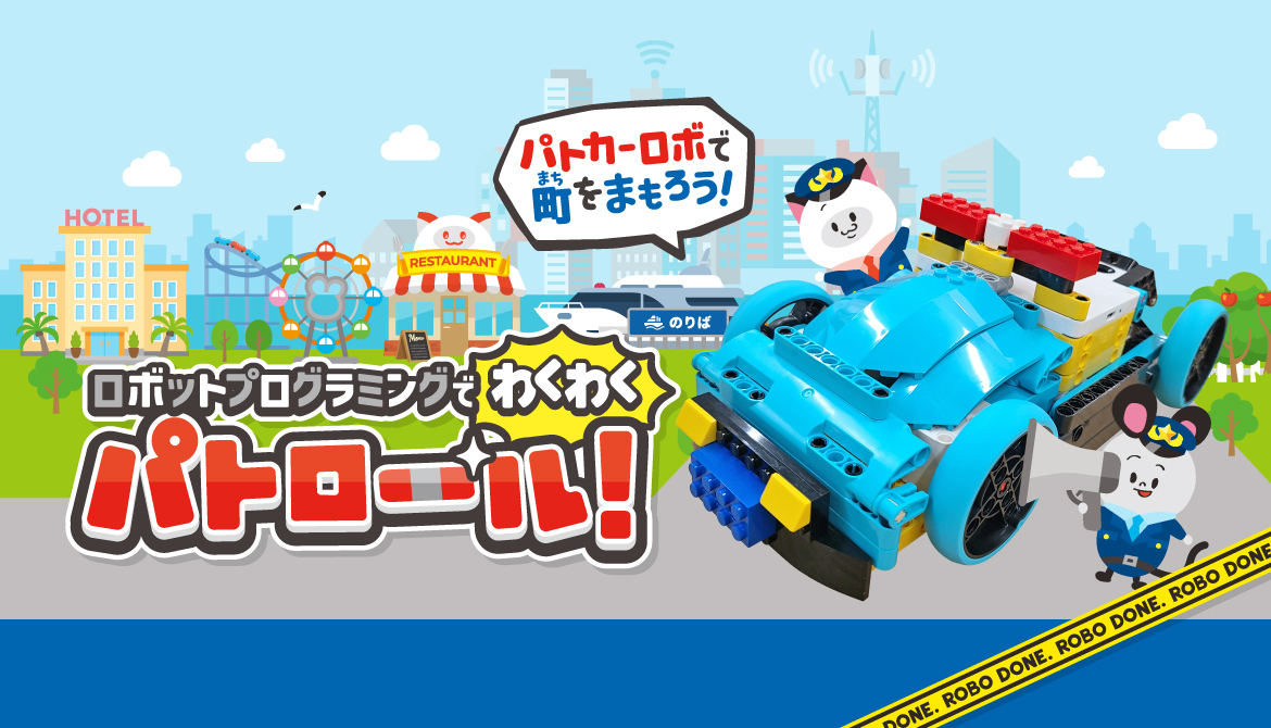 レゴ社が開発した子ども向けのSTEAM教材「レゴ®エデュケーション SPIKE™ プライム」を使用してパトカーロボットを作成し、プログラミングを行います。